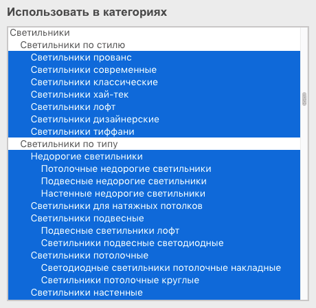 1) Любой товар в первую очередь относится к одной или нескольким категорий товаров, поэтому в разделе "Каталог товаров">"Категории" создаем категорию и заполняем все поля (поле "Описание" и "SEO текст" - не обязательны).