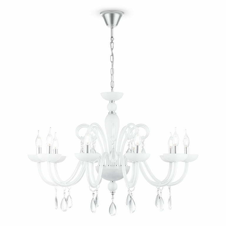 Оригинальный внешний вид светильников серии обусловлен матовыми стеклянными деталями, которые составляют большую часть конструкции. Светильники украшены подвесками в форме капель. Они закреплены на рожках с помощью стеклянных колец. Высоту люстр возможно изменить, регулируя высоту цепи.