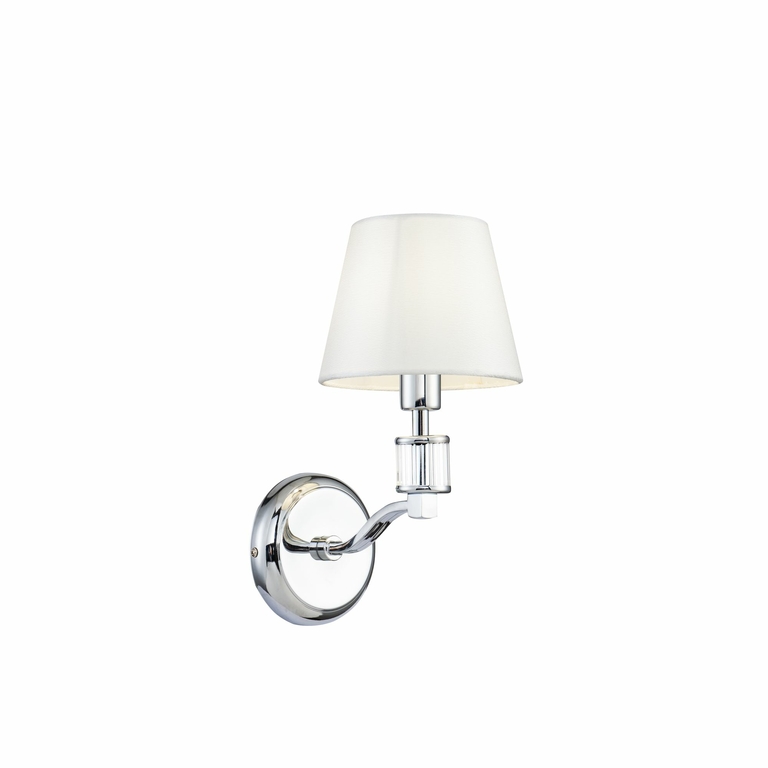 Серия классических светильников в светлой цветовой гамме. Изящные светильники могут стать хорошим дополнением интерьеров гостиных и спален. Дизайн арматуры дополнен декоративными элементами из прозрачного стекла. Абажуры сделаны из белой атласной ткани.