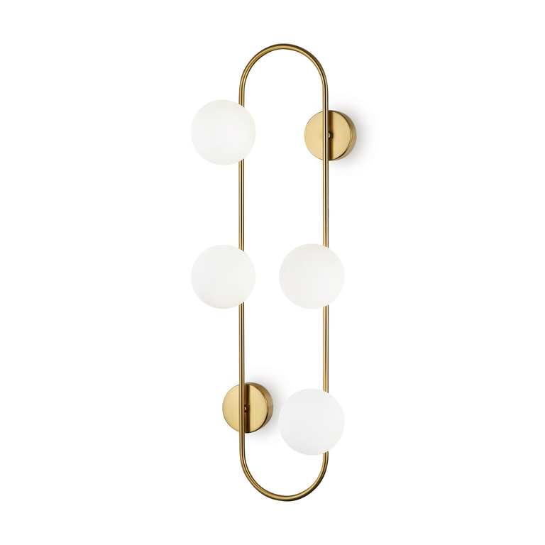 Арматура - металл, цвет - латунь. Стеклянные плафоны-сферы в двух оттенках белый матовый и дымчатый в настенно потолочной версии. Округлые и плавные линии - беспроигрышное сочетание для современных интерьеров. Настенные бра можно использовать как для общего на потолке так и для зонального настенного освещения Источник света - лампа с цоколем G9.
