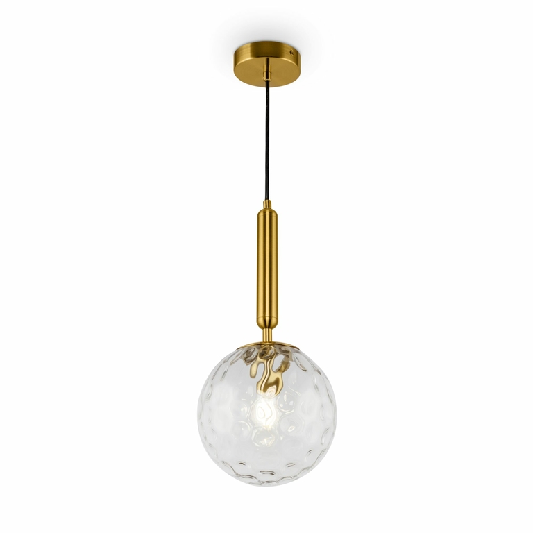 Металлическая арматура оттенка латуни. Плафоны-сферы в двух вариантах: матовое белое стекло и прозрачное с рельефной фактурой. Широкий ассортимент для зональной подсветки. В качестве источника света используется лампа с цоколем Е14.