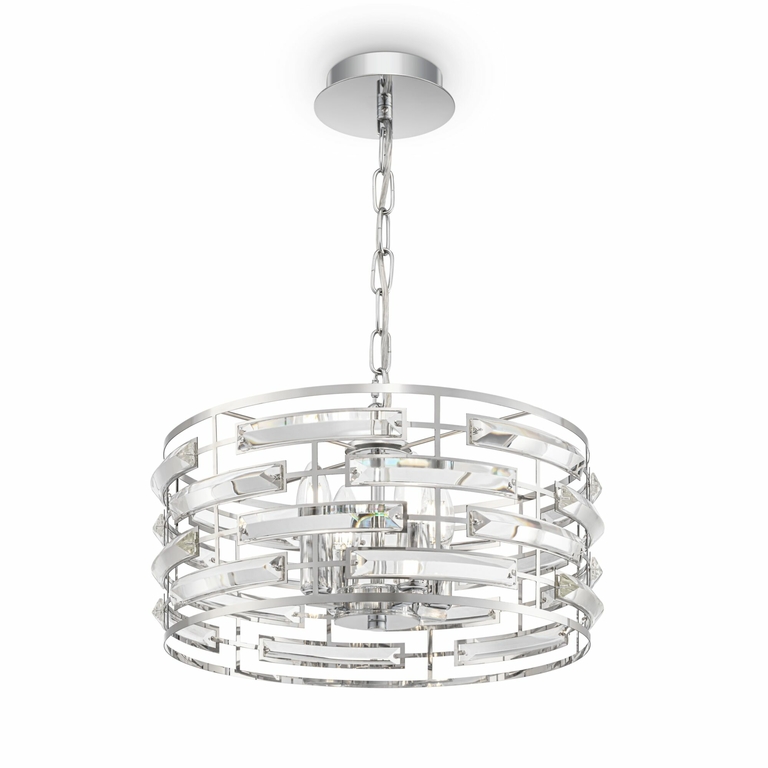 Арматура из нержавеющей стали, цвет арматуры – хром. Металлический каркас абажура декорирован прозрачным хрусталем. Высота подвесных моделей регу лируется.