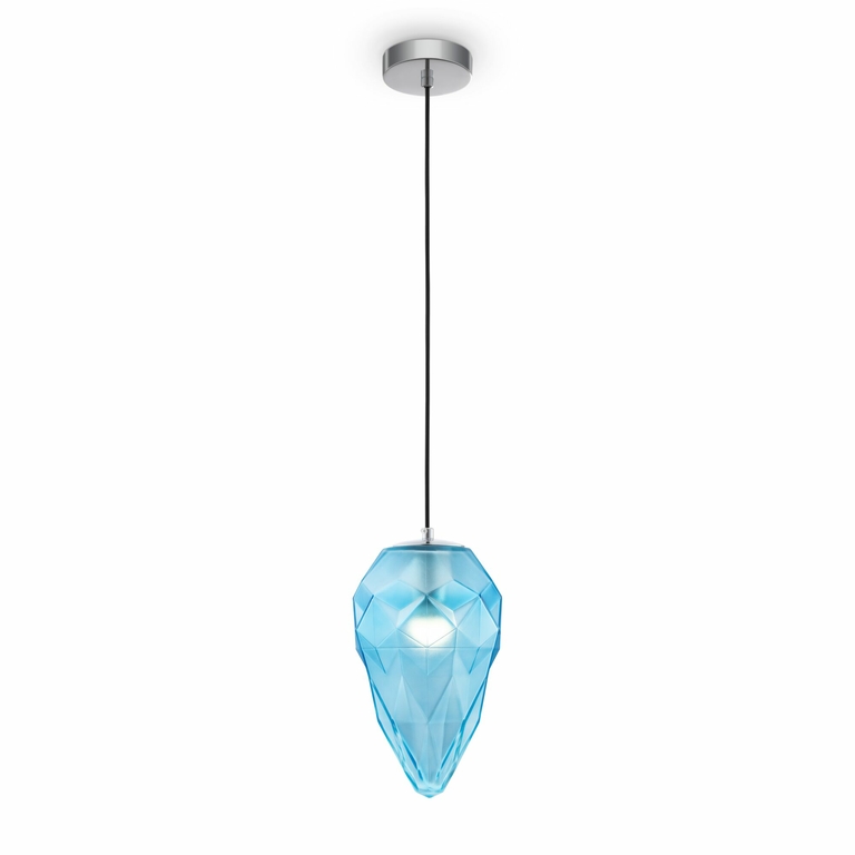 В образе светильников серии Globo сочетаются идеально четкие прямые линии и необычная форма. Многочисленные отражения света зачаровывают зрителя днем и еще больше ночью, при включенном освещении. Плафоны светильников изготовлены из стекла и представлены в голубом, розовом и сером цвете. Арматура сделана из металла. Высота светильников регулируется длиной шнура.