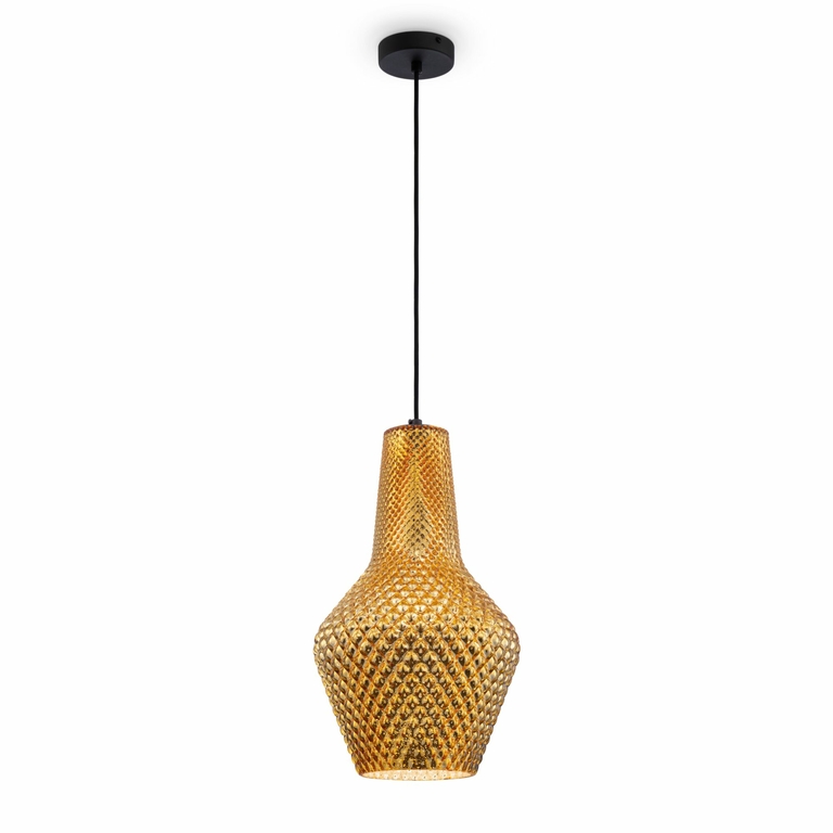Арматура из металла в черном цвете. Фактурный плафон с рельефным рисунком, материал – выдувное стекло. Высота светильников ре