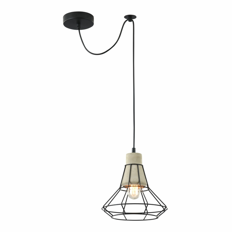 Комбинированные плафоны светильников серии Gosford изготовлены из бетона и металлической проволоки. Разнообразие форм и размеров плафонов в сочетании с дополнительным потолочным креплением дают безграничные возможности для творчества. Светильники можно комбинировать друг с другом, создавая цельные композиции. Все металлические детали выкрашены в черный цвет. Высота светильников регулируется длиной шнура.