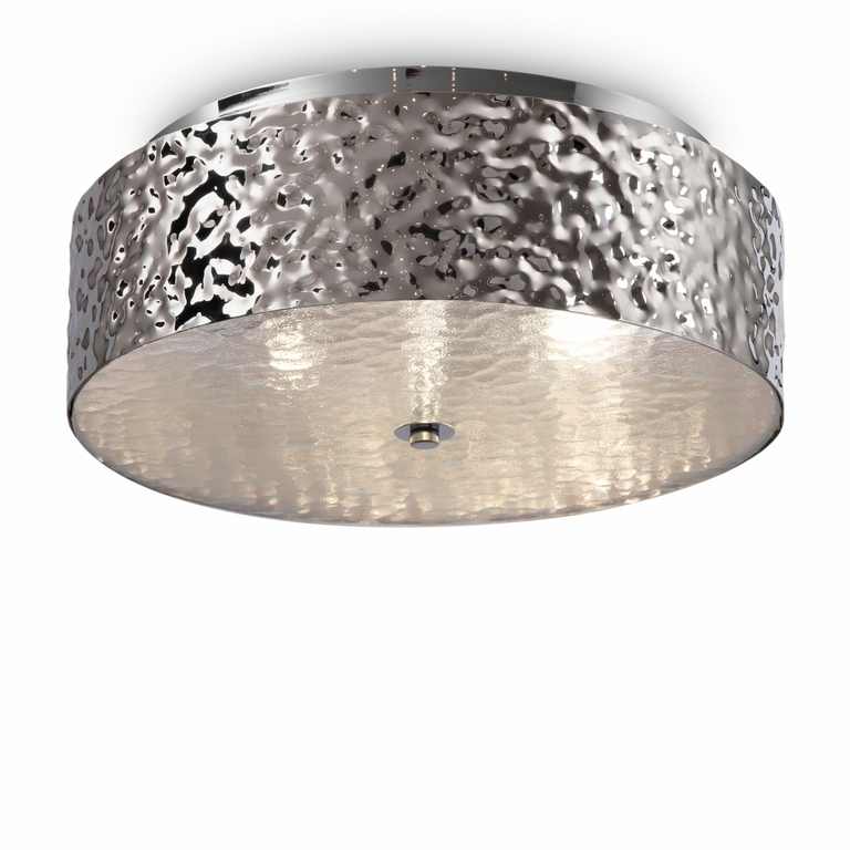 Арматура – металл в цветах хром и золото. Фактурный рисунок нанесен посредством чеканки. Стекло с рельефной поверхностью скрывает источники света. Декора тивный эффект «рябь на воде». Источник света - лампа с цоколем Е14.