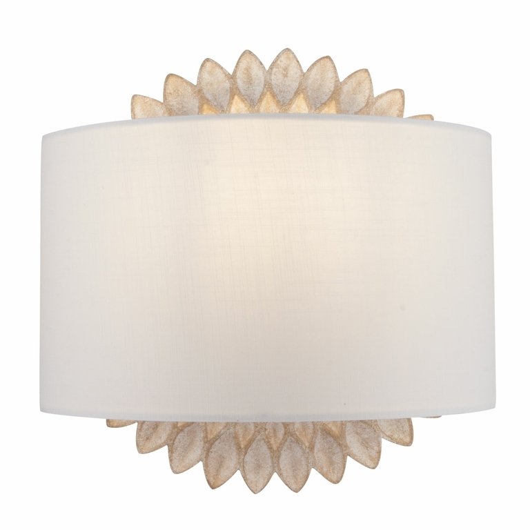 Арматура из металла, цвет – кремовый с золотом. Абажур – белый хлопок на ПВХ. Флористический декор.