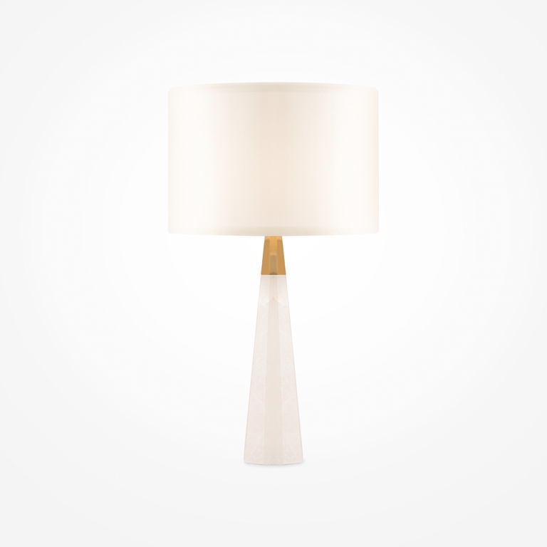 Металлическая арматура, цвет – латунь. Абажур – белый хлопок. Изюминка дизайна – элементы из натурального камня (алебастра). Трендовый микс фактур. Лаконичные формы в американском стиле. Источник света - лампа с цоколем Е14.