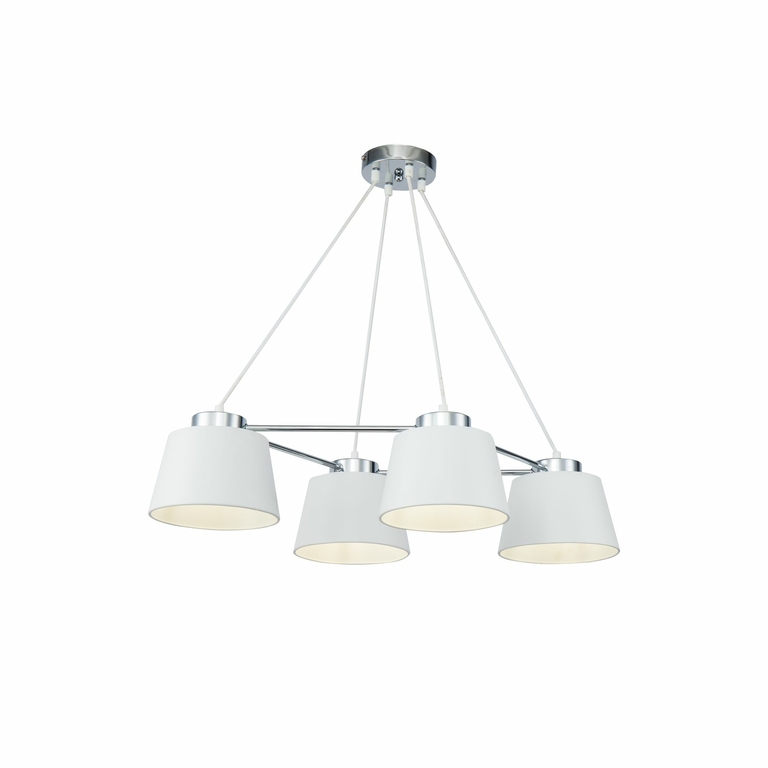 Светильники серии Barbara словно парят над помещением. Этот эффект достигнут благодаря светлому цветы арматуры и плафонов. Арматура и плафоны сделаны из металла. Цвет арматуры - хром, а плафоны окрашены порошковым способом в белый цвет.