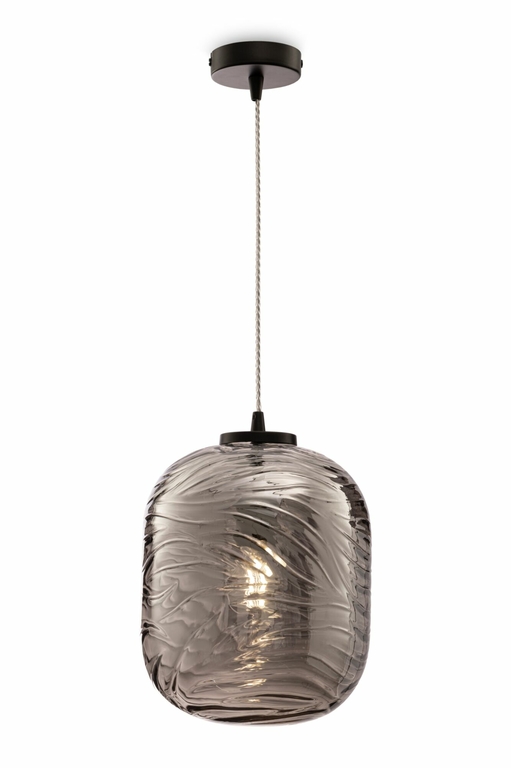 Волнистые мягкие линии на поверхности стеклянных плафонов напоминают песочные барханы, перетекающие один в другой по бескрайним просторам пустыни. Благодаря такой фактуре образ заключенной внутри лампы размывается, а свет становится рассеянным и буквально обволакивает освещаемое пространство. Плафоны представлены в дымчатом, прозрачном и янтарном цвете. Высоту светильников можно отрегулировать, изменяя длину шнура.