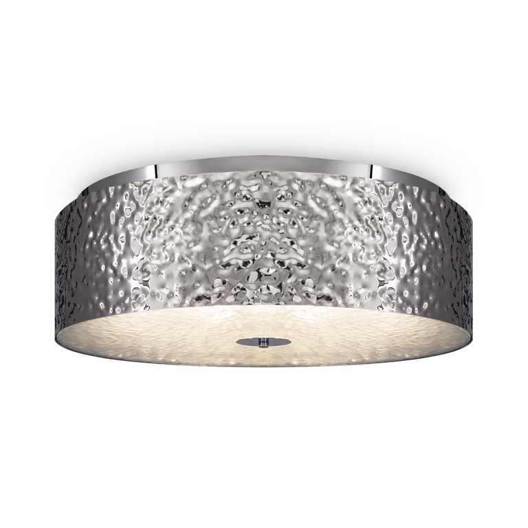 Арматура – металл в цветах хром и золото. Фактурный рисунок нанесен посредством чеканки. Стекло с рельефной поверхностью скрывает источники света. Декора тивный эффект «рябь на воде». Источник света - лампа с цоколем Е14.